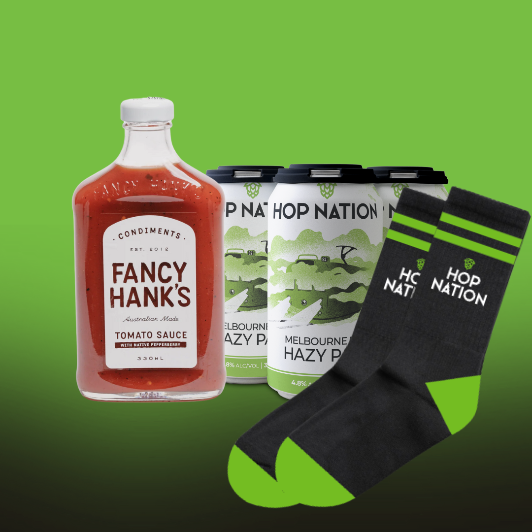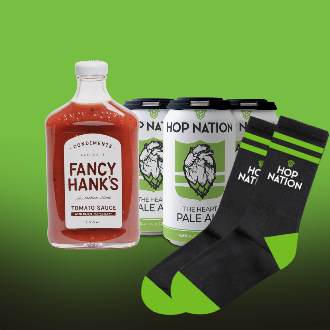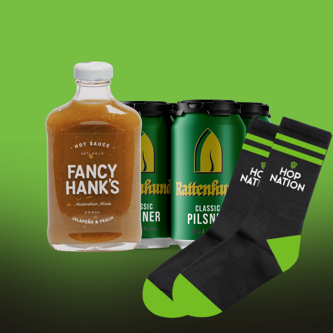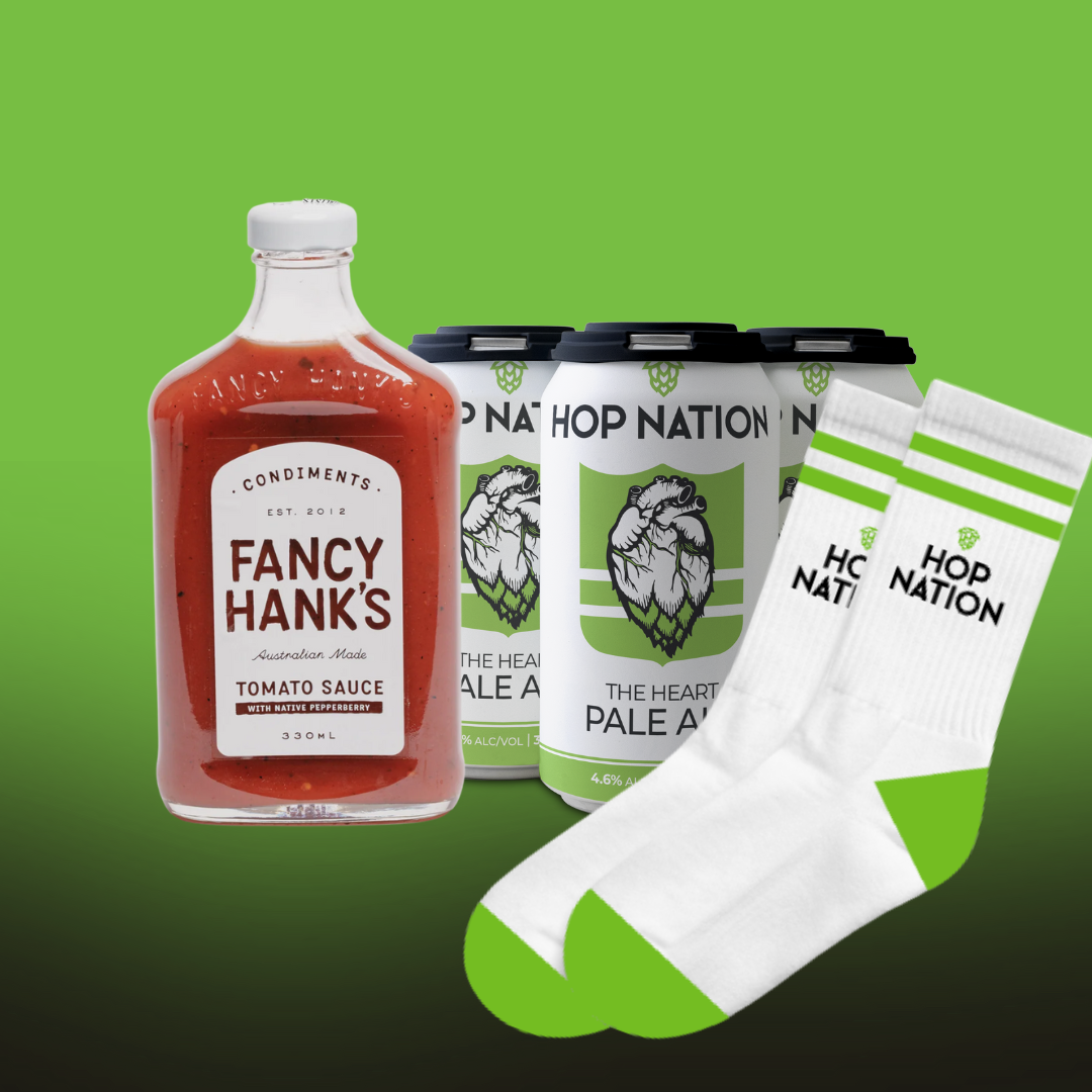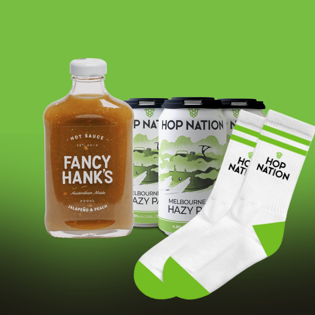 Grab a Hop Nation 4-pack, pair it with a Fancy Hanks sauce, and throw in some branded socks—boom, you’ve got the ultimate KK gift.