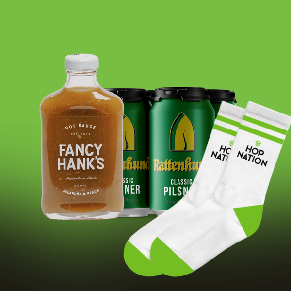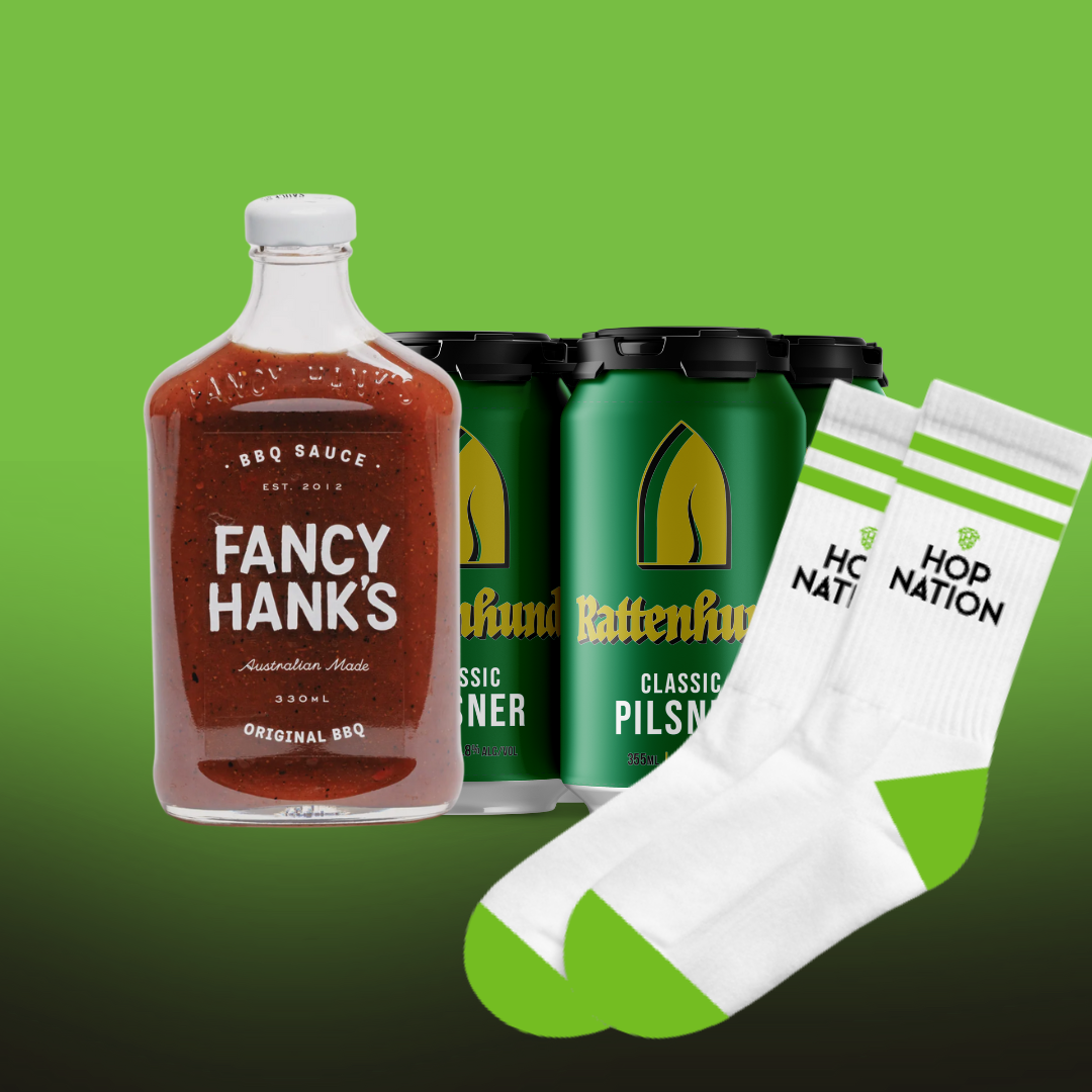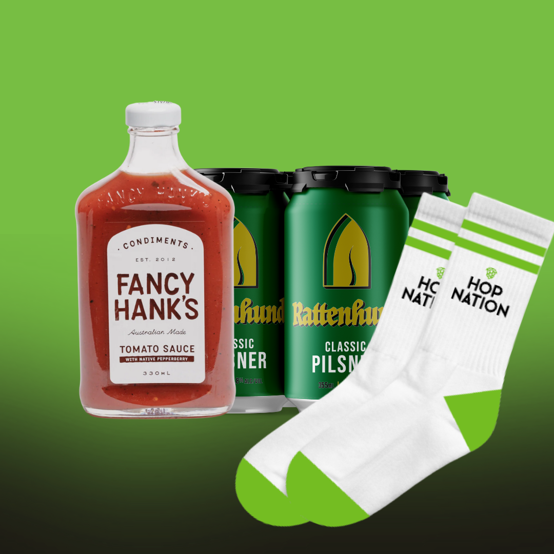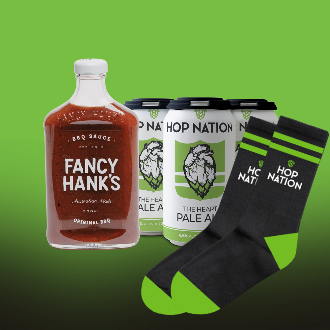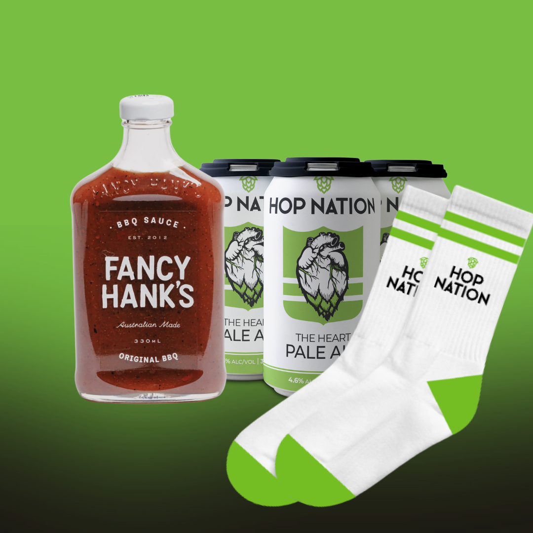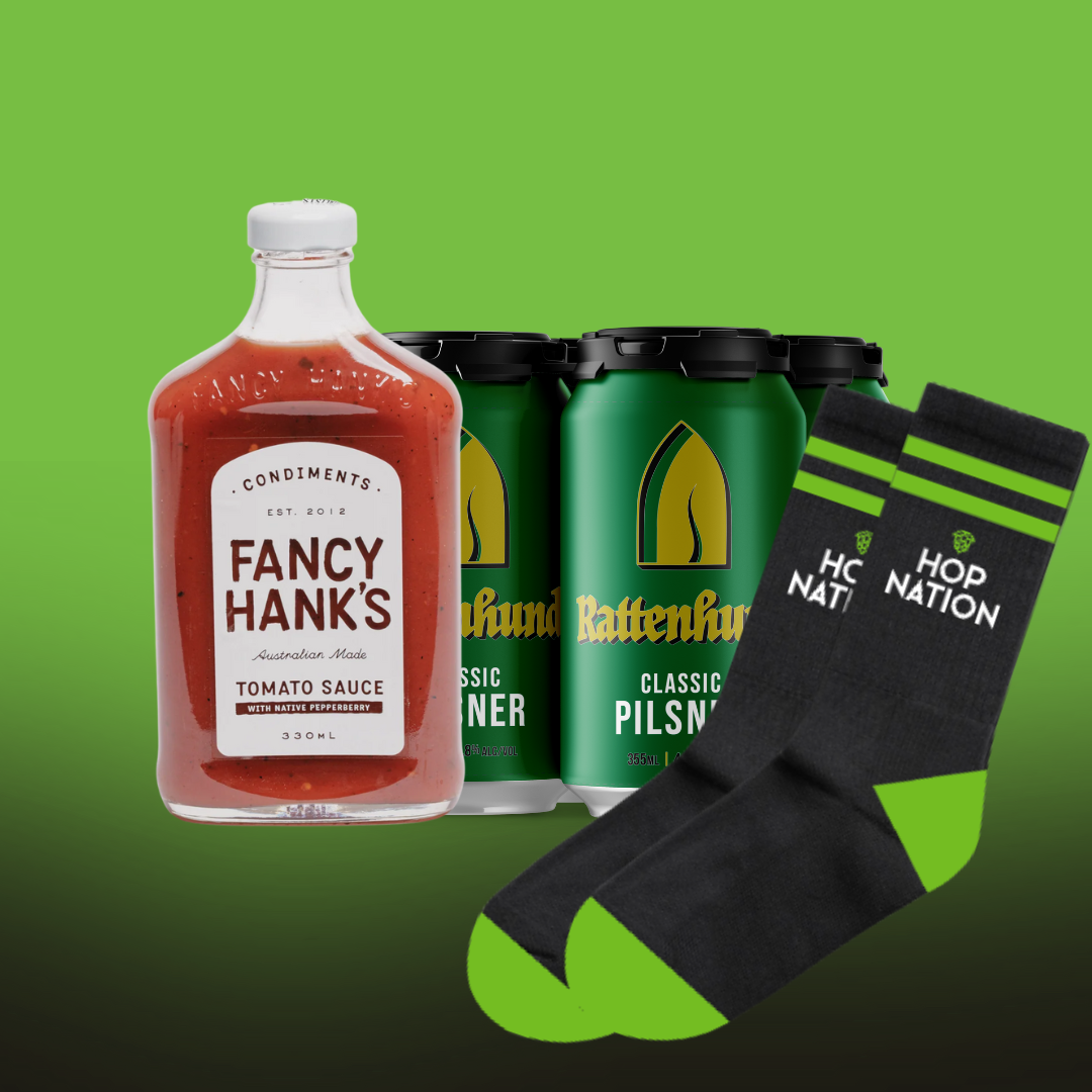 Grab a Hop Nation 4-pack, pair it with a Fancy Hanks sauce, and throw in some branded socks—boom, you’ve got the ultimate KK gift.