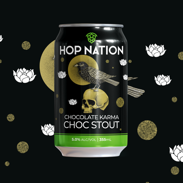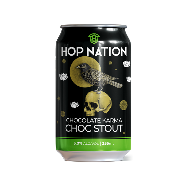 The Karma Chocolate Stout, with three uniquely-toasted malts alongside specialty oats and the addition of vanilla beans, milk, sugar and cacao nibs. Smooth and creamy, enjoy this delicate and soft Chocolate Stout, knowing you have Karma on your side.