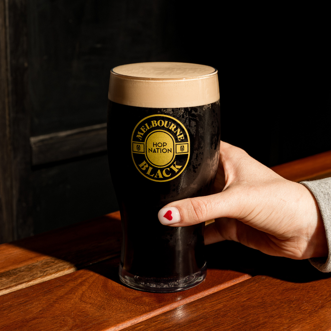 Dark, dry, and defiant. Melbourne Black is a stout with soul, with the quality you expect from a Hop Nation brew. Brewed in Melbourne, solely for a city that knows its draught nitro stouts. Taste-wise, expect a full, creamy, nitro pub stout with depth but surprising drinkability. A walnut cream head that settles just right, with a subtle, enticing aroma of clean, quality malt.