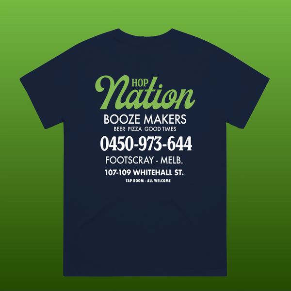 A simple Navy Blue branded T-Shirt on super-comfy short sleeve tee screen printed on a unisex T-shirt cut.